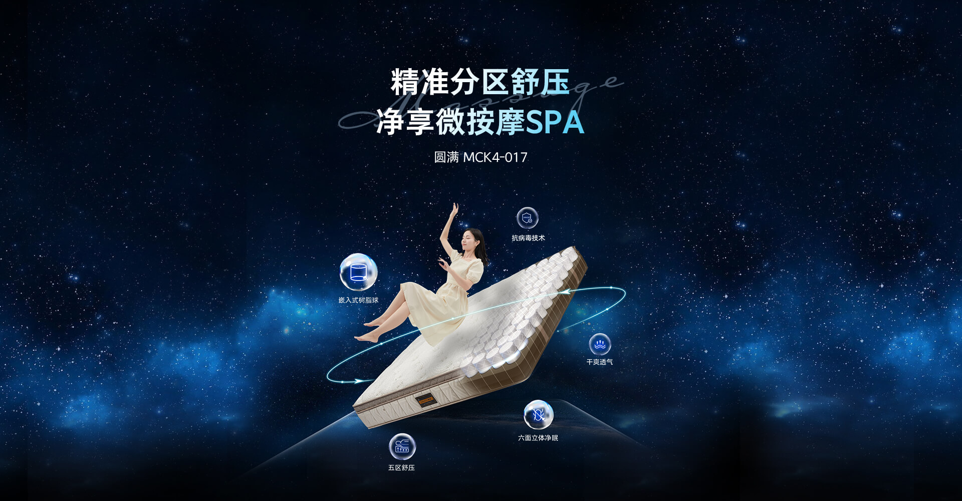 | 主 材 | 五区独立筒/嵌入式太空树脂球/英威达抗菌棉 /3D材质/SANITIZED®三防海绵 |